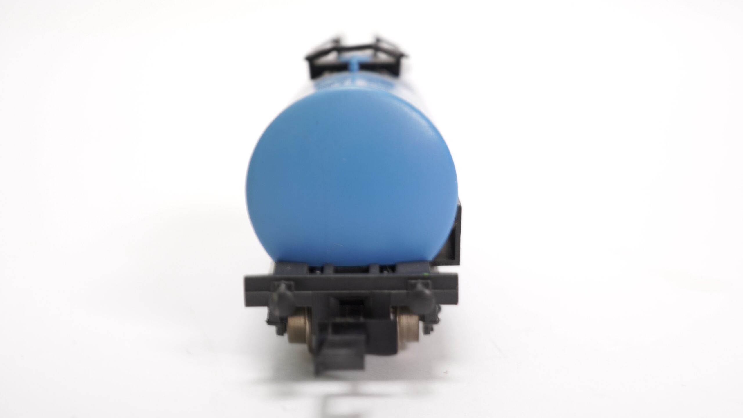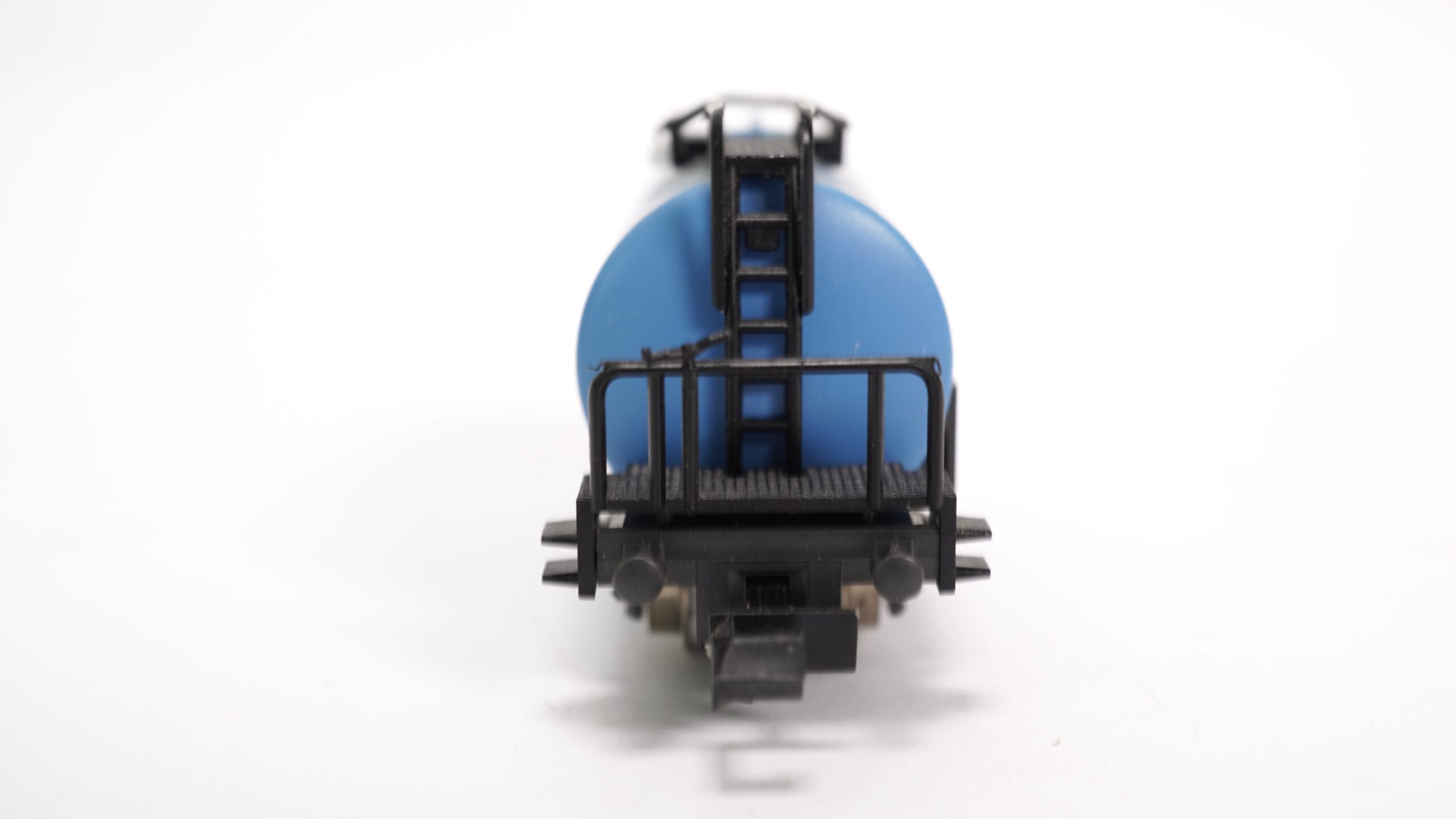 • Der Kesselwagen verfügt über ein robustes Chassis mit detaillierten Drehgestellen und Rädern, die für einen reibungslosen Betrieb auf Modelleisenbahnschienen sorgen.