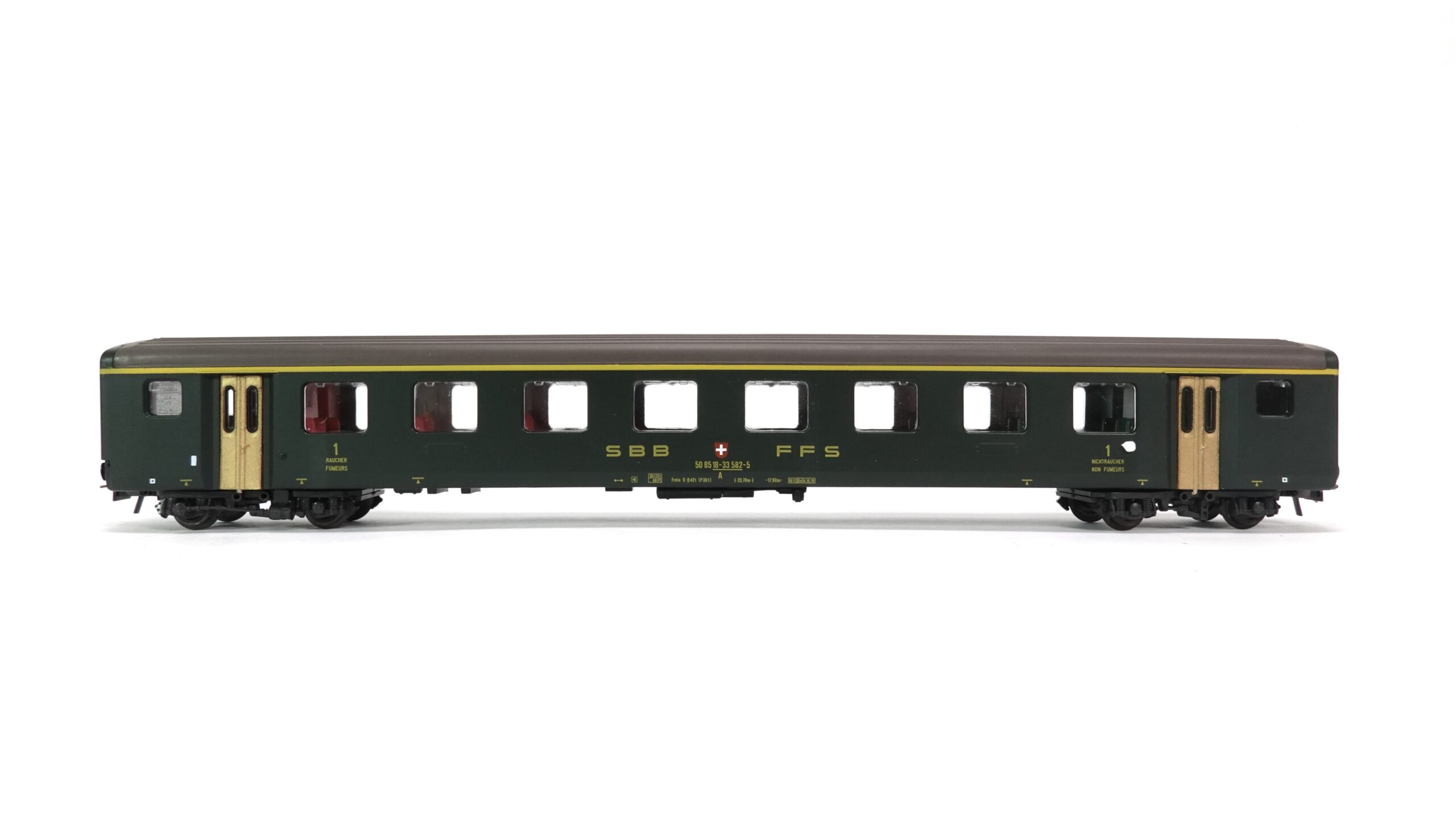 Roco H0 SBB Personenwagen EW II 1. Kl. bringt diese Erfahrung ins Modellbahnzimmer. Auf H0-Spur lässt sich der Wagen perfekt in bestehende Züge einreihen und wertet jede Anlage optisch auf. Besonders in Kombination mit historischen oder modernen Lokomotiven entsteht ein realistisches Bild des Schweizer Personenverkehrs, das die Atmosphäre von gepflegtem Bahnreisen detailgetreu einfängt.