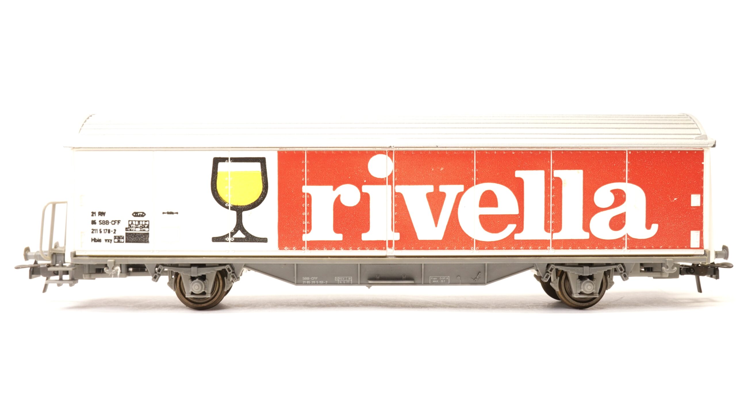 Der Roco 4341G H0 SBB Güterwagen Hbis rivella ist ein Güterwagen der Bauart Hbis, der speziell für den Transport von Getränken wie Rivella entwickelt wurde. Mit seiner charakteristischen roten und weißen Lackierung und dem markanten Rivella-Logo ist dieser Wagen ein echter Hingucker auf jeder Modelleisenbahnanlage.