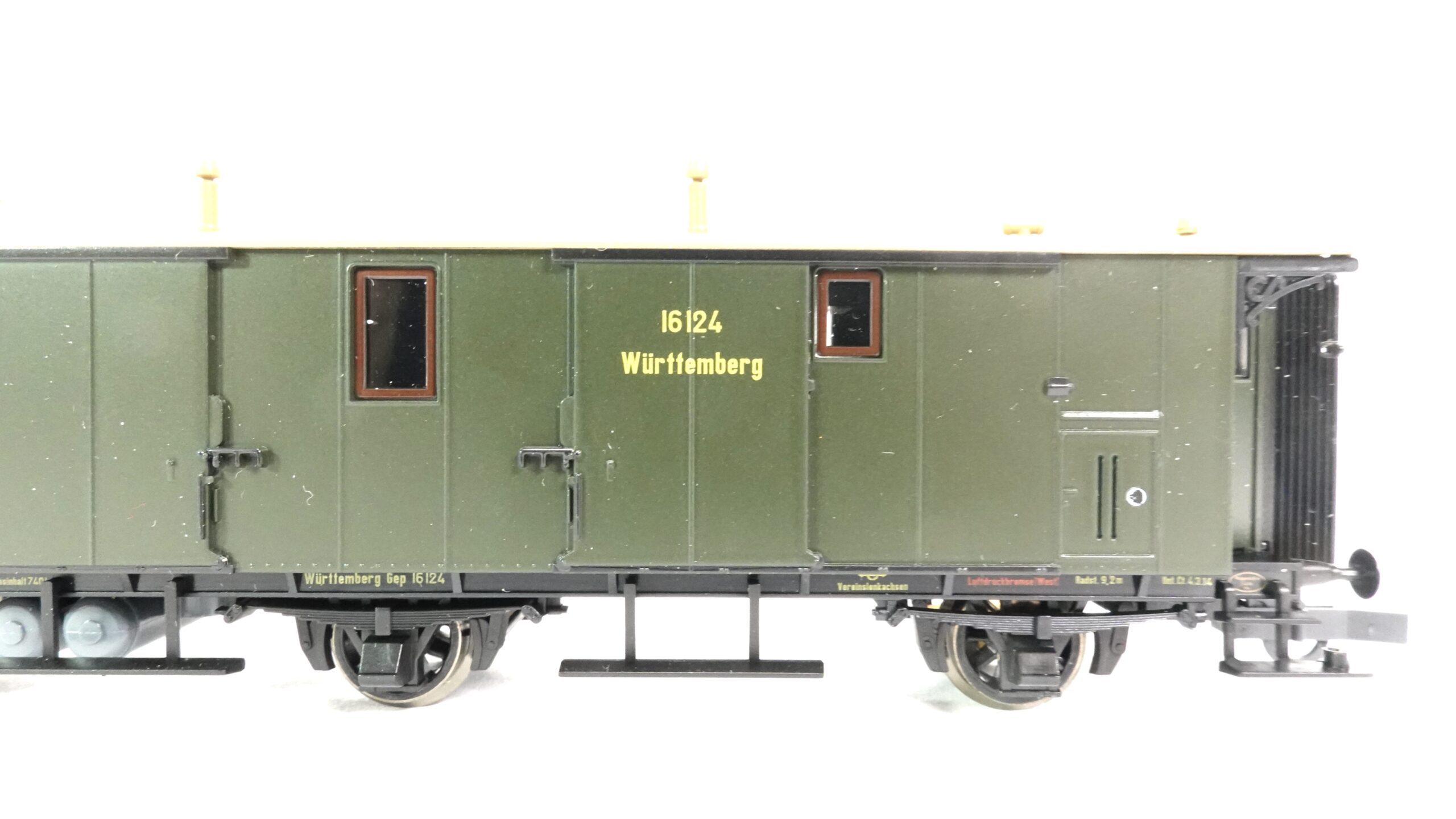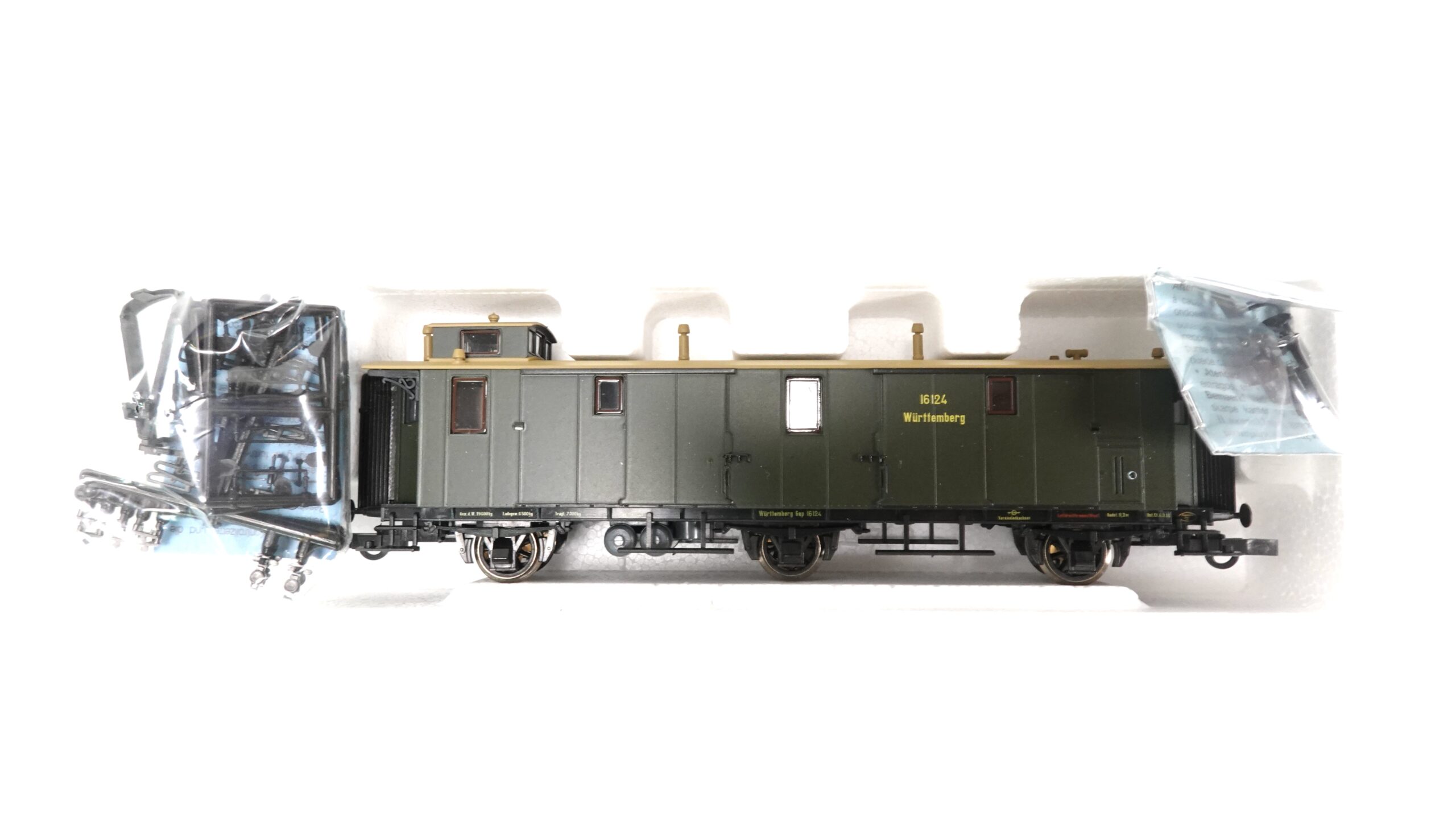 Der Roco K.W.St.E. Schnellzugpackwagen verkörpert die Eleganz und Effizienz der historischen Schnellzüge auf den Strecken der Königlich Württembergischen Staats-Eisenbahnen. Packwagen wie dieser waren unverzichtbare Begleiter, die neben der Beförderung von Gepäck auch wichtige Sendungen, Post und Expressgut transportierten. Sie standen für die logistische Leistung der Bahn und spielten eine zentrale Rolle im reibungslosen Ablauf des Schienenverkehrs.