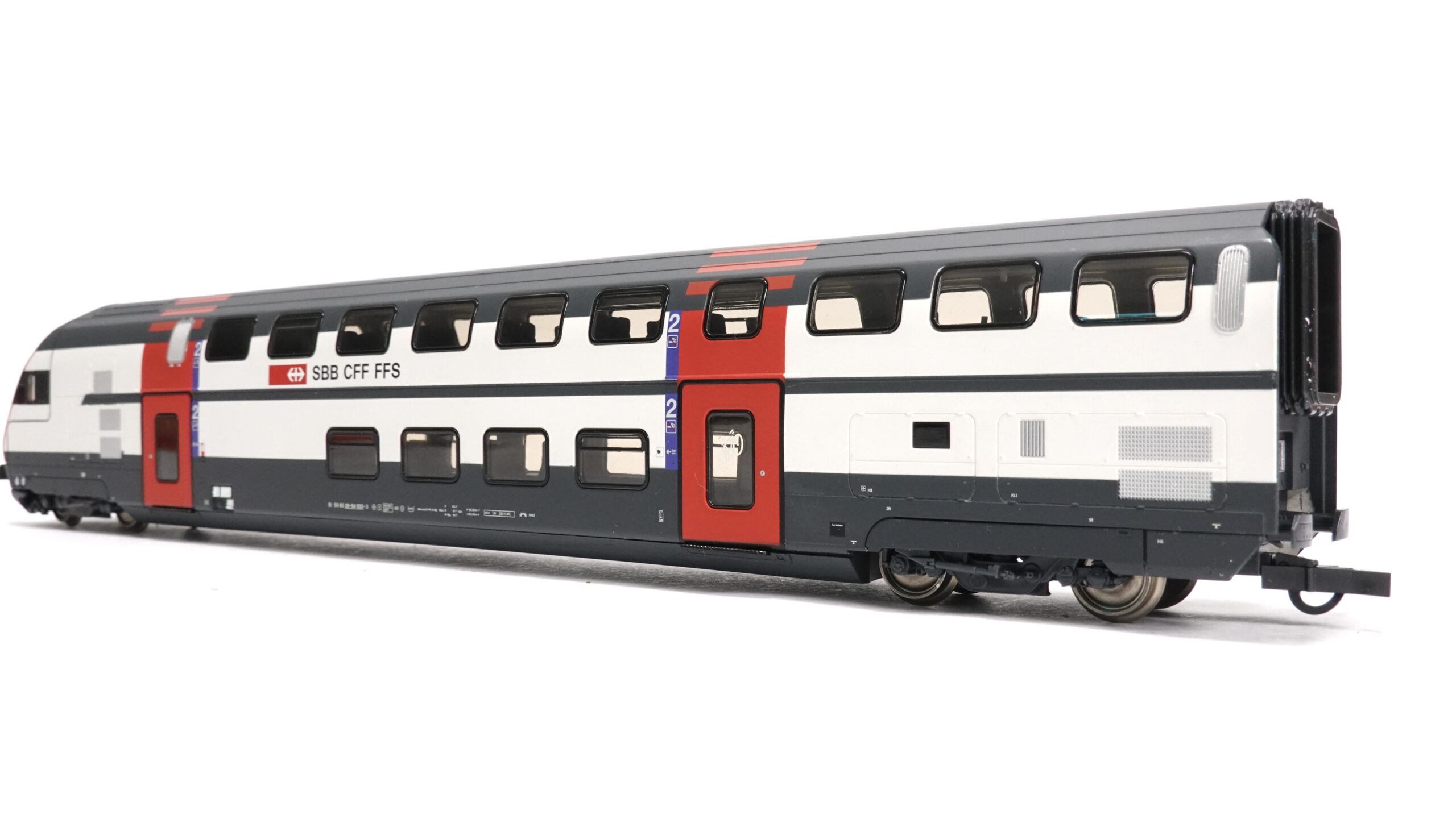 Der Roco 45464.1 H0 SBB Doppelstock Steuerwagen verkörpert den Komfort und die Effizienz des modernen Schweizer Nahverkehrs. Doppelstockwagen haben die Art und Weise revolutioniert, wie Menschen auf stark frequentierten Strecken reisen: Mehr Fahrgäste auf weniger Platz, verbunden mit einem hohen Maß an Sicherheit und Komfort. Dieser Steuerwagen, der in Kombination mit Elektrolokomotiven eingesetzt wird, erlaubt den Fahrerwechsel an beiden Enden des Zuges, was die Flexibilität im Betrieb deutlich erhöht und den reibungslosen Ablauf im Pendelverkehr gewährleistet.
