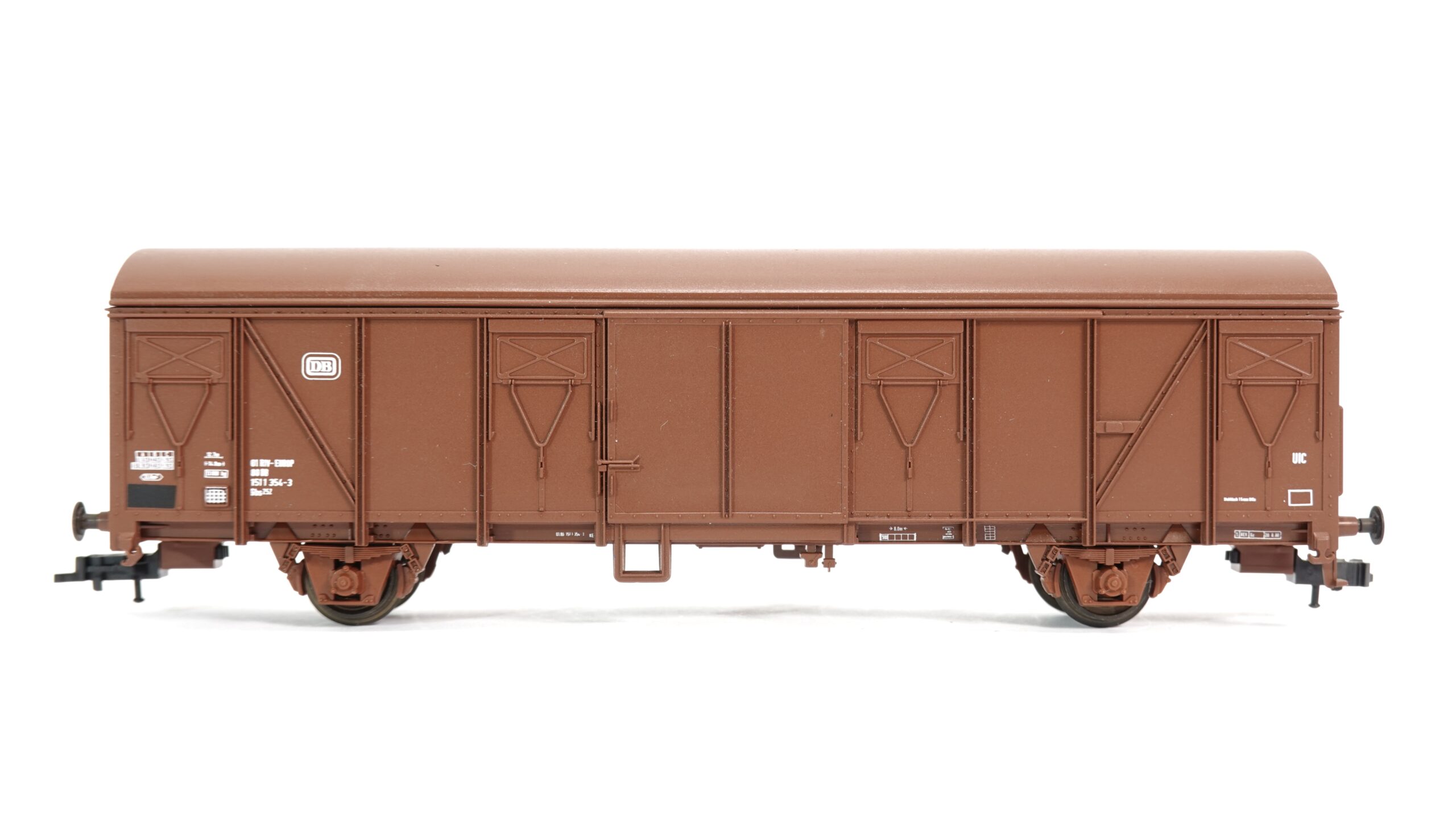 Der Roco 46410 H0 DB gedeckte Güterwagen Gbs ist ein hochwertiges Modell im Maßstab H0, das die klassische Funktionalität und Ästhetik eines originalen DB Güterwagens perfekt einfängt. Dieses Modell ist ideal für Modelleisenbahn-Enthusiasten, die Wert auf Detailtreue und Authentizität legen. Der Wagen ist in einem klassischen Braun lackiert und verfügt über zahlreiche realistische Details, die ihn zu einem echten Blickfang machen.