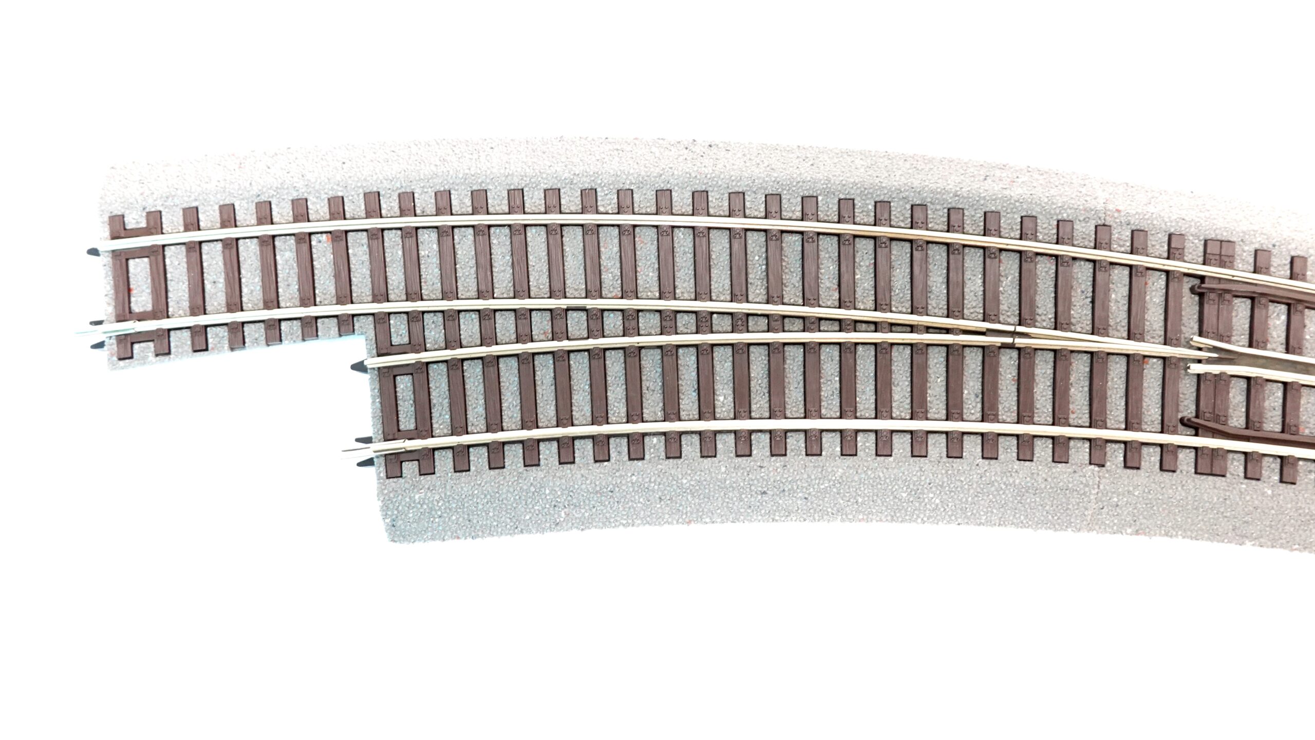 • Typ: BWl 9/10 Bogenweiche links / Radius R9/R10, passend zur Geometrie des Roco-Line Systems.