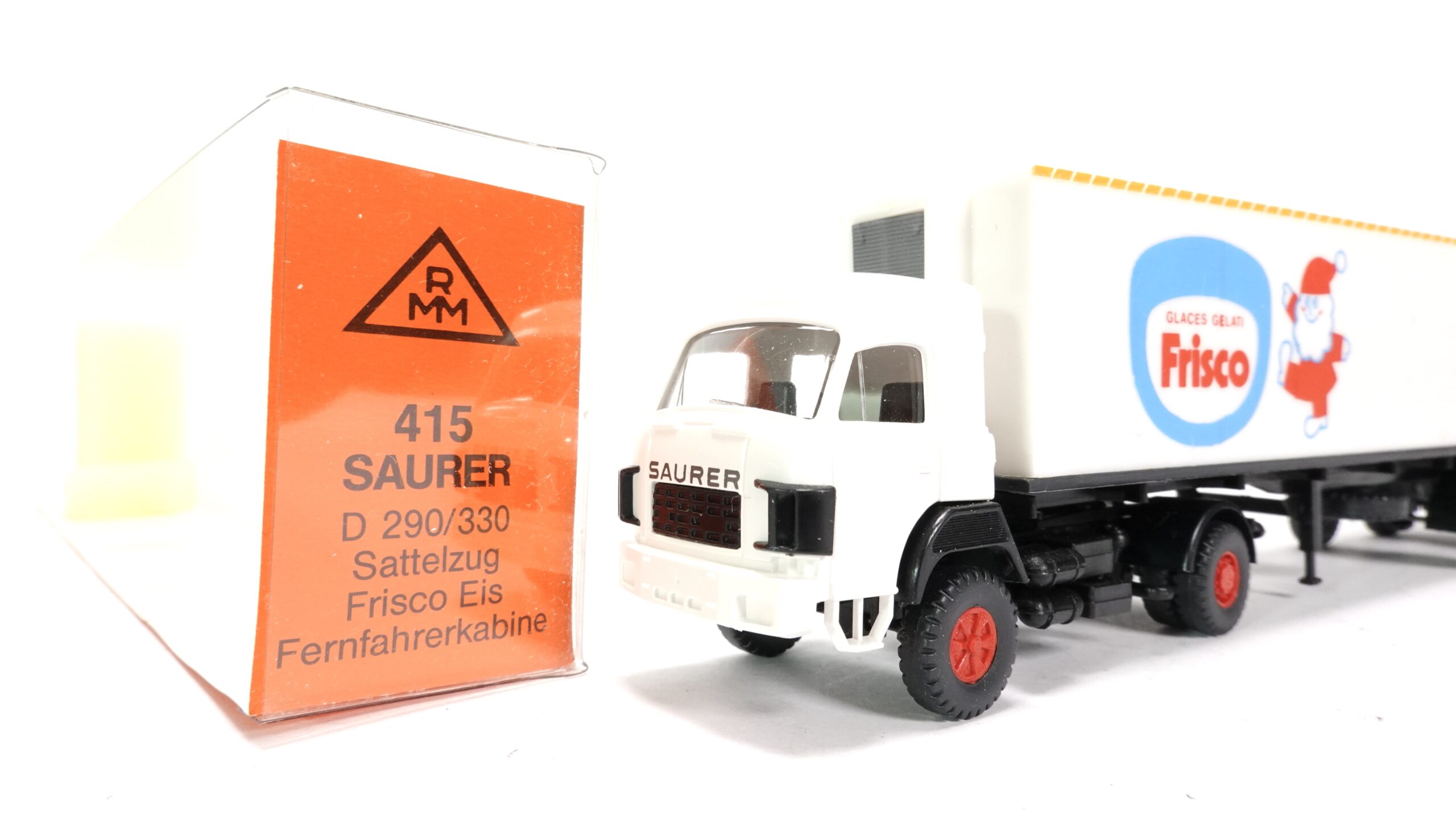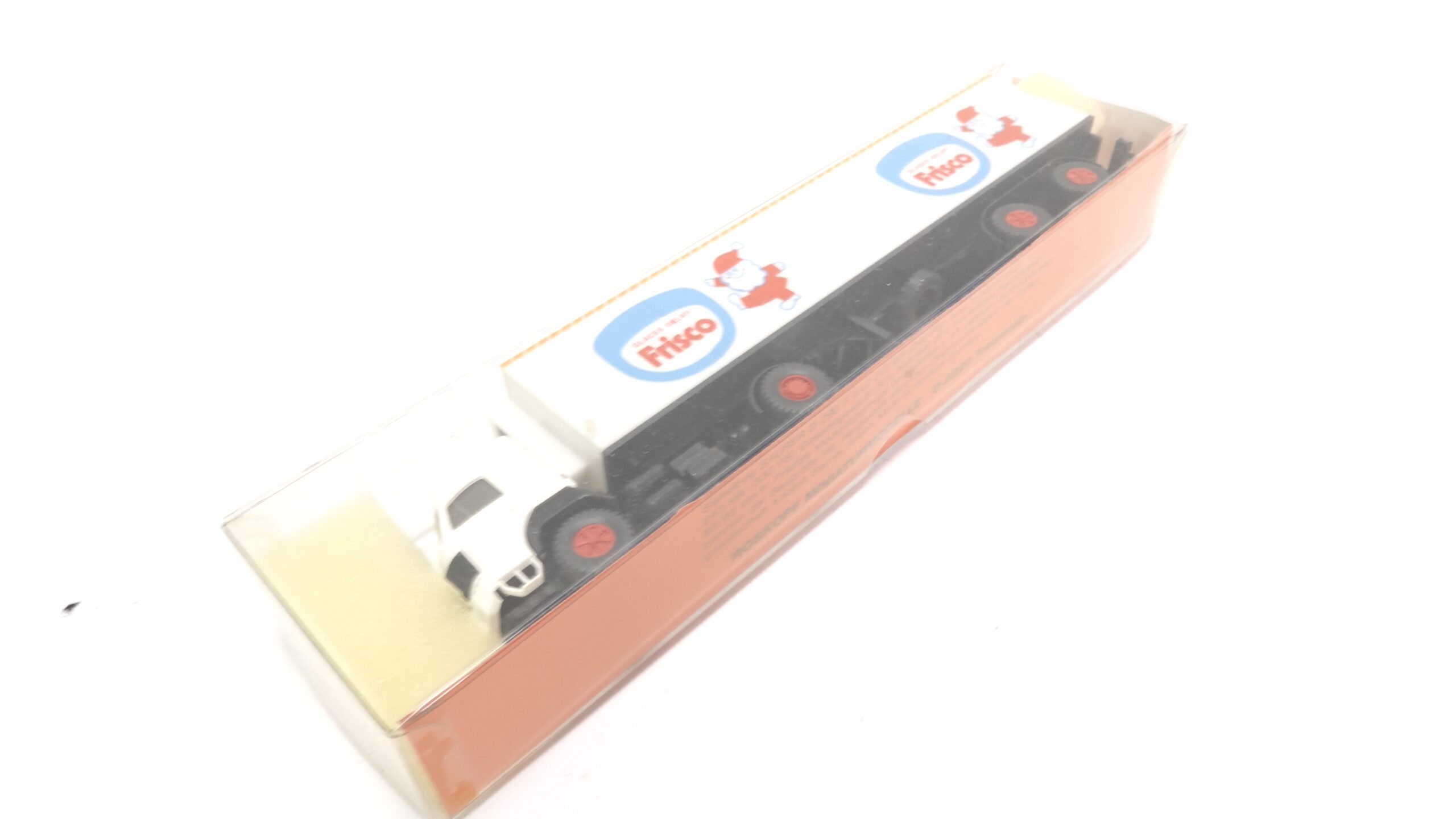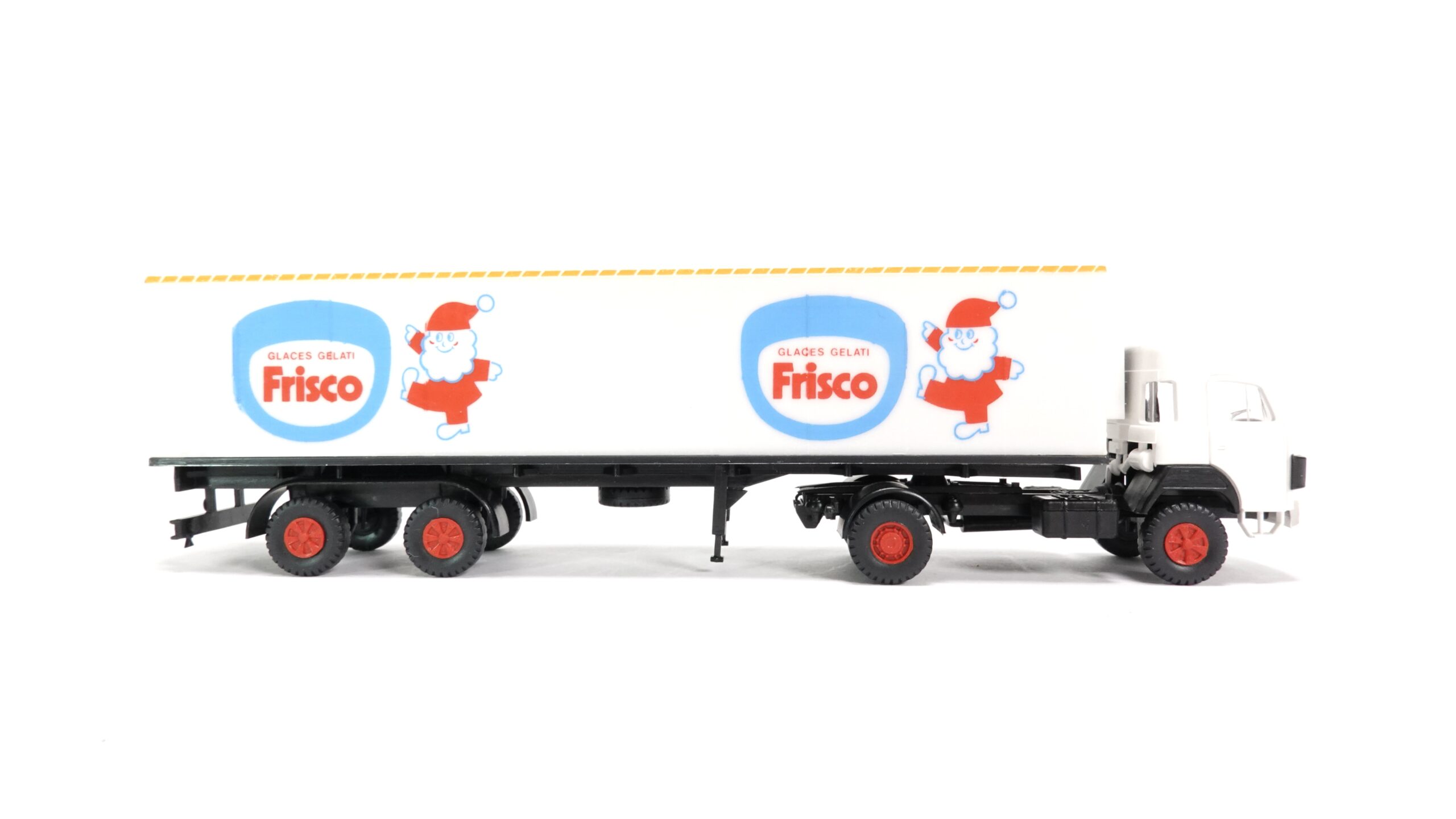 Solche Saurer-Sattelzüge waren in der Realität auf den Straßen der Schweiz und Europas unterwegs, um empfindliche Lebensmittel – wie Speiseeis oder Tiefkühlwaren – sicher ans Ziel zu bringen. Gerade in den 1960er- und 1970er-Jahren war Frisco ein vertrauter Anblick auf Volksfesten, in Freibädern oder an Kiosken. Die typischen Fahrzeuge im hellblauen Marken-Design mit dem unverkennbaren Frisco-Logo machten nicht nur Werbung, sondern symbolisierten auch Schweizer Lebensfreude und Qualität.