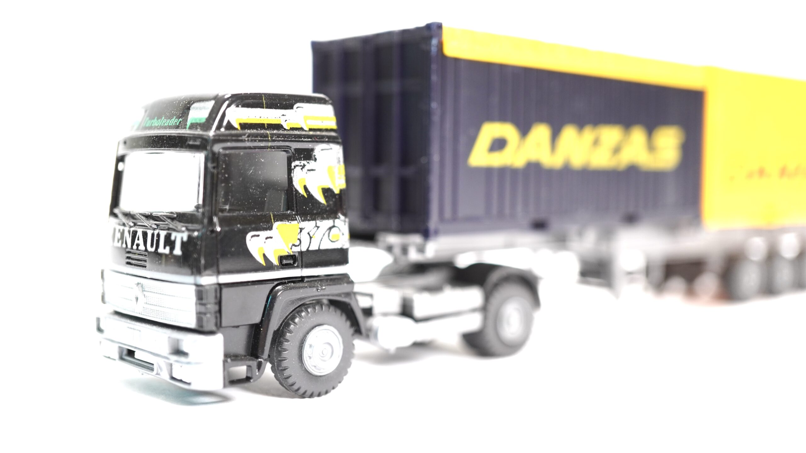 Besonders in der Ausführung für Danzas erinnert der Roskopf Renault R 370 Turboleader Containersattelzug Danzas an eine Zeit, in der das traditionsreiche Logistikunternehmen Danzas europaweit für effiziente Transportlösungen stand. Die klar erkennbare Unternehmensgestaltung machte die Fahrzeuge zu rollenden Visitenkarten auf den Straßen Europas. Ob auf dem Weg zu großen Seehäfen, zu Industriezentren oder über Alpenpässe – solche Trucks waren täglich tausende Kilometer unterwegs.
