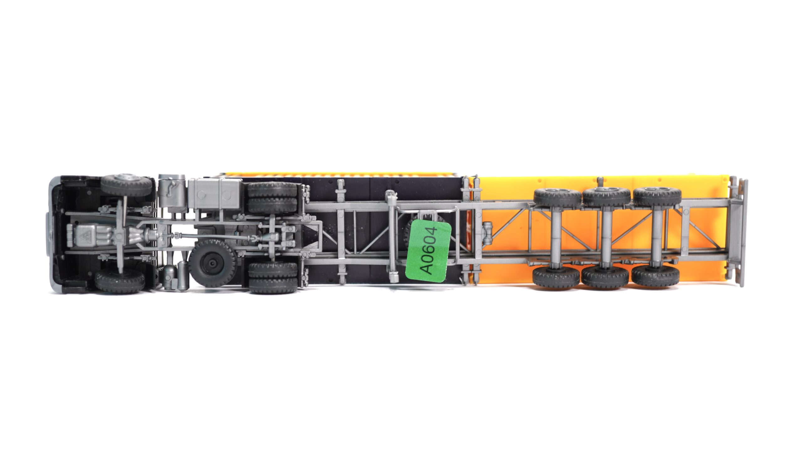 Der Renault R 370 Turboleader gehörte zu den Flaggschiffen von Renault Trucks und war für den harten Einsatz im Fernverkehr konzipiert. Sein kraftvolles Erscheinungsbild vermittelte Zuverlässigkeit und Durchsetzungsstärke – Eigenschaften, die im internationalen Transportgeschäft unerlässlich waren. In Kombination mit einem Containersattelauflieger wurde er zum typischen Vertreter des modernen Güterverkehrs, bei dem standardisierte Container den weltweiten Warenfluss revolutionierten.