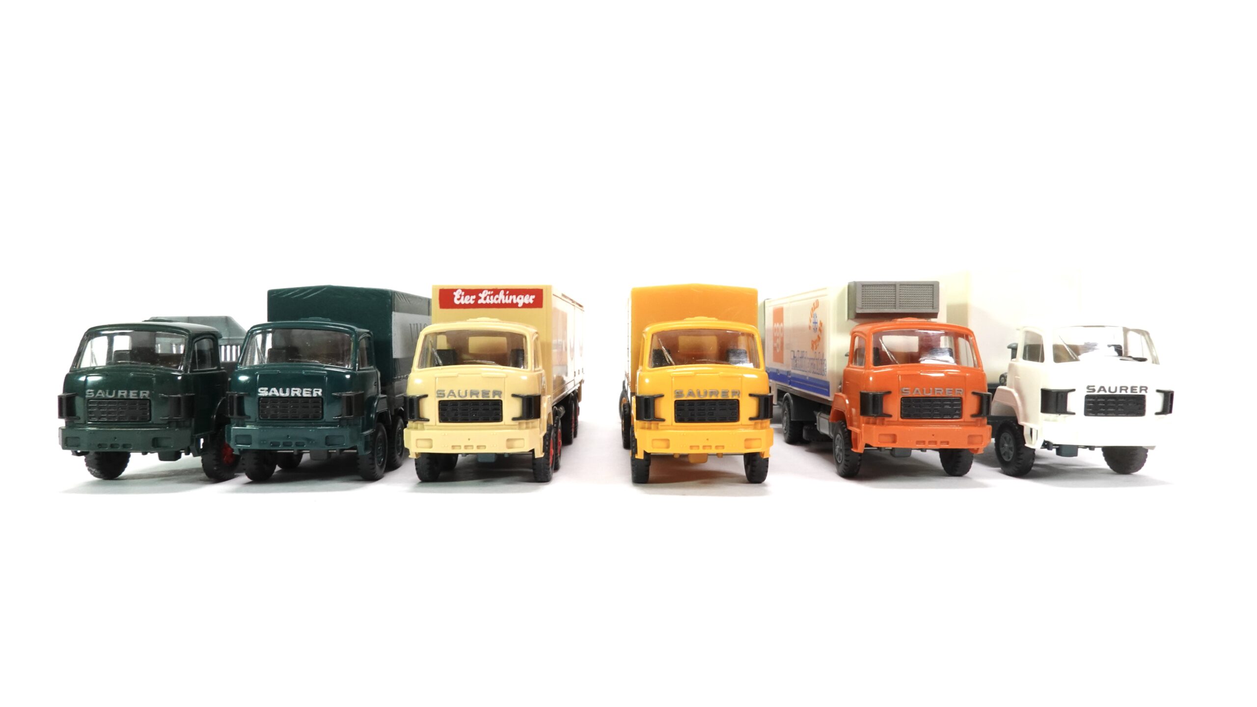 Das Konvolut umfasst sechs verschiedene Fahrzeuge, die in Kombination vielseitige Einsätze ermöglichen: vom innerbetrieblichen Transport über kurvige Bergstraßen bis hin zum alltäglichen Lieferverkehr in städtischen und ländlichen Umgebungen. Jedes Fahrzeug erzählt seine eigene Geschichte und spiegelt die Rolle der Saurer LKWs im wirtschaftlichen Leben der Schweiz wider. Durch ihre markante Form und den historischen Charme fügen sich die LKWs perfekt in Szenen von Bahnhöfen, Industrieanlagen oder Landstraßen ein.