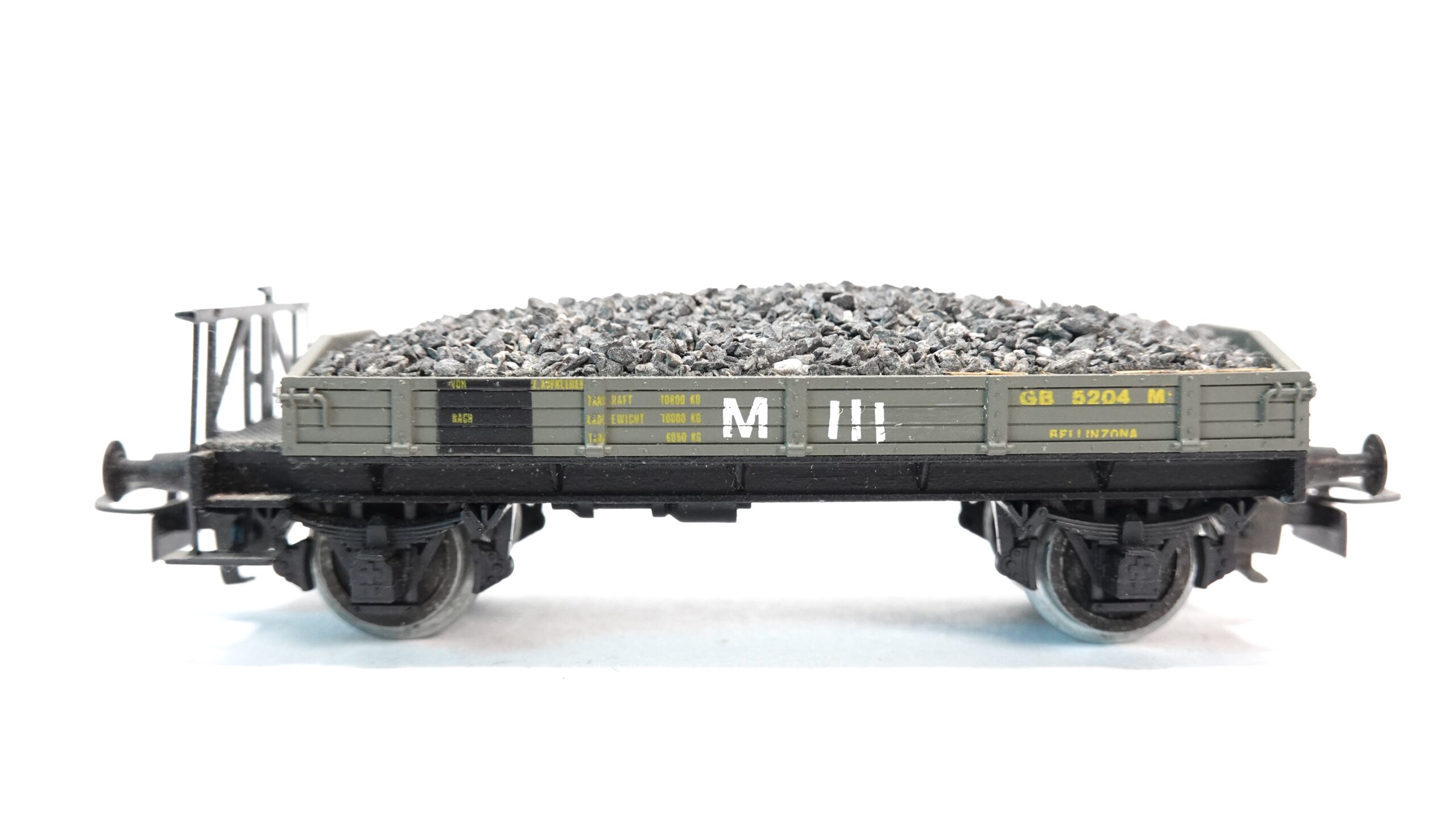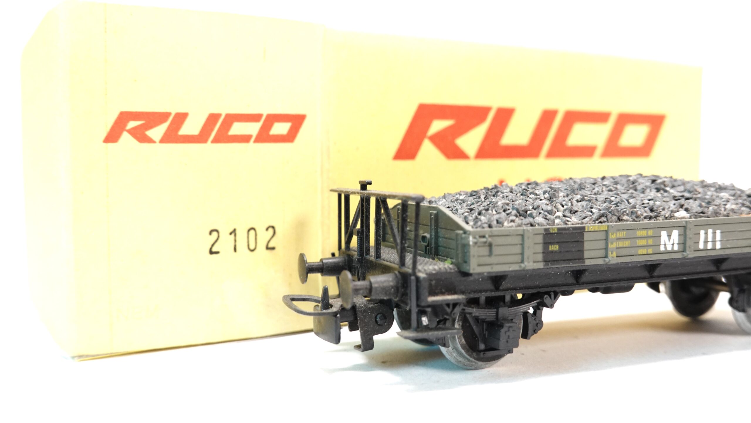 Mit dem Ruco SBB Niederbordwagen mit Kiesladung 5204 lässt sich genau dieses Bild glaubwürdig nachstellen. Er passt ideal in klassische SBB-Güterzüge und ergänzt Bau- oder Materialtransporte auf jeder Epoche-orientierten Anlage. Besonders in Kombination mit weiteren Güterwagen entsteht eine lebendige Szene, die den Betriebsalltag der Schweizer Bahn realitätsnah widerspiegelt.