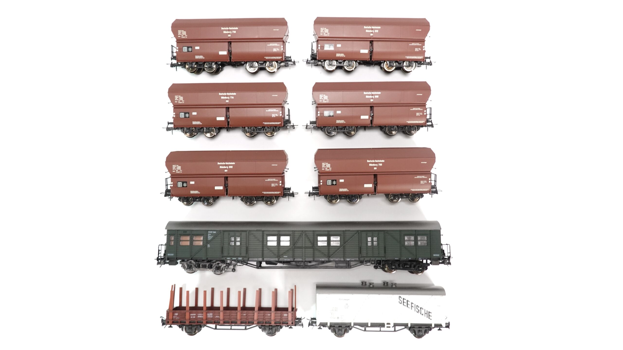 Das Set neun deutsche Güterwagen H0 ist ein Muss für jeden Modellbahnfreund, der Wert auf Authentizität und Vielfalt legt. Die Wagen dieses Sets repräsentieren verschiedene Typen, die im realen deutschen Schienenverkehr eingesetzt wurden – von klassischen Kippwagen über gedeckte Güterwagen bis hin zu offenen Transportwagen. Jeder einzelne Wagen erzählt seine eigene Geschichte und bringt die Realität des Güterverkehrs direkt auf die Modellbahnanlage.