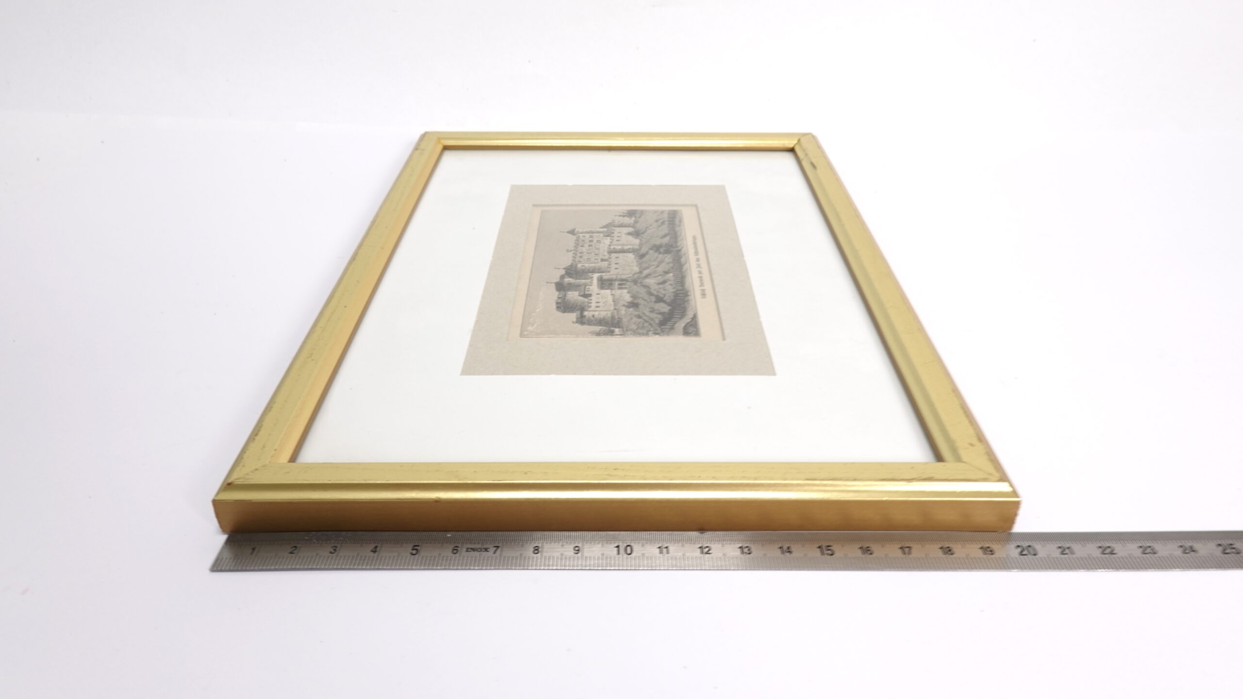 Die Darstellung zeigt das Schloss in seiner romantischen Verfallsschönheit – eingebettet in eine leicht dramatische Landschaft, oft ergänzt durch kleine Staffagefiguren oder Naturmotive, die dem Bild Tiefe verleihen. Solche Stahlstiche wurden im 19. Jahrhundert in aufwendiger Handarbeit gefertigt und waren besonders bei Bildungsbürgern und Reisenden beliebt, die sich ein Stück Kultur und Erinnerung in Form eines Bildes nach Hause holen wollten.