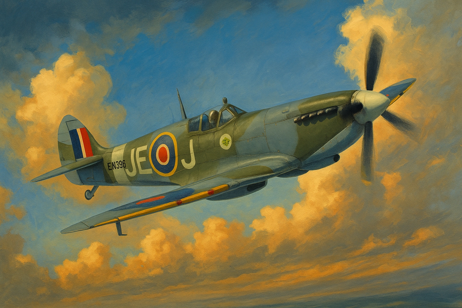 Dieses sorgfältig gearbeitete Modell zeigt die Supermarine Spitfire Mk IX, eines der bekanntesten Jagdflugzeuge des Zweiten Weltkriegs. Die Spitfire gilt als Symbol des britischen Widerstands und spielte eine entscheidende Rolle in der Royal Air Force (RAF). Die hier dargestellte Maschine trägt die Betriebsnummer EN398 mit der markanten Kennung JE-J – geflogen von Wing Commander Johnnie Johnson, dem erfolgreichsten britischen Jagdflieger des Krieges.
