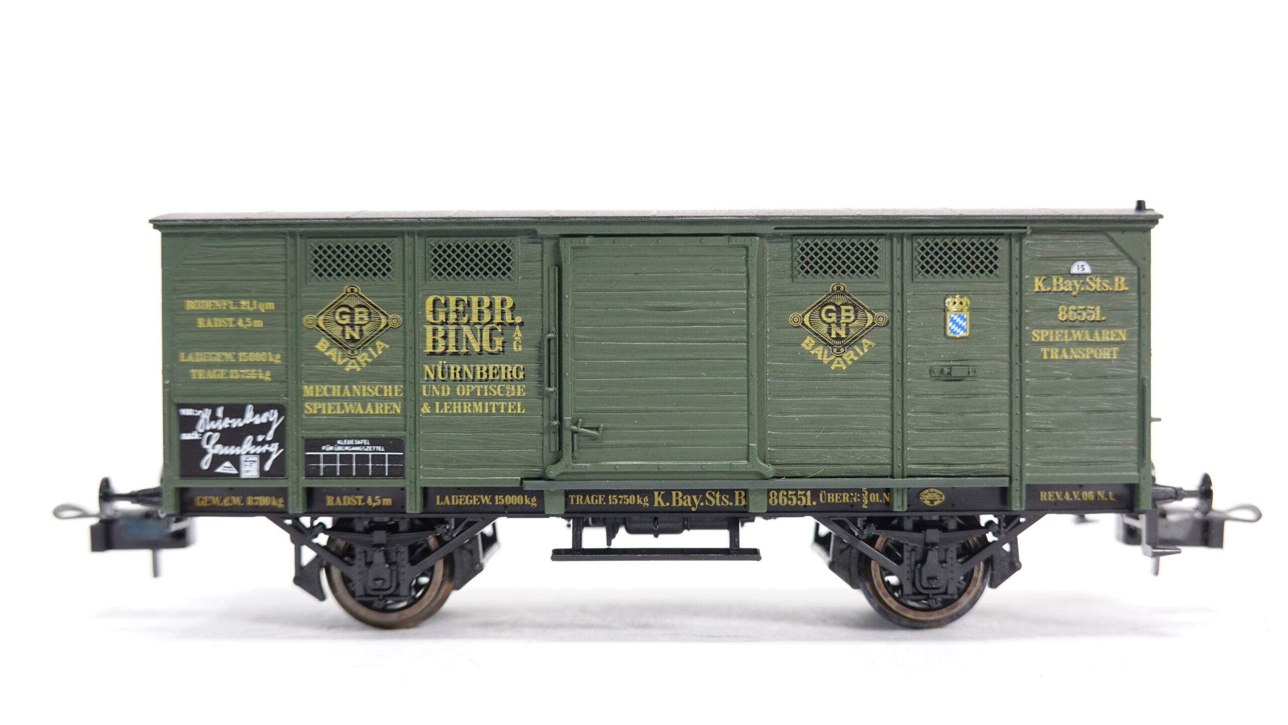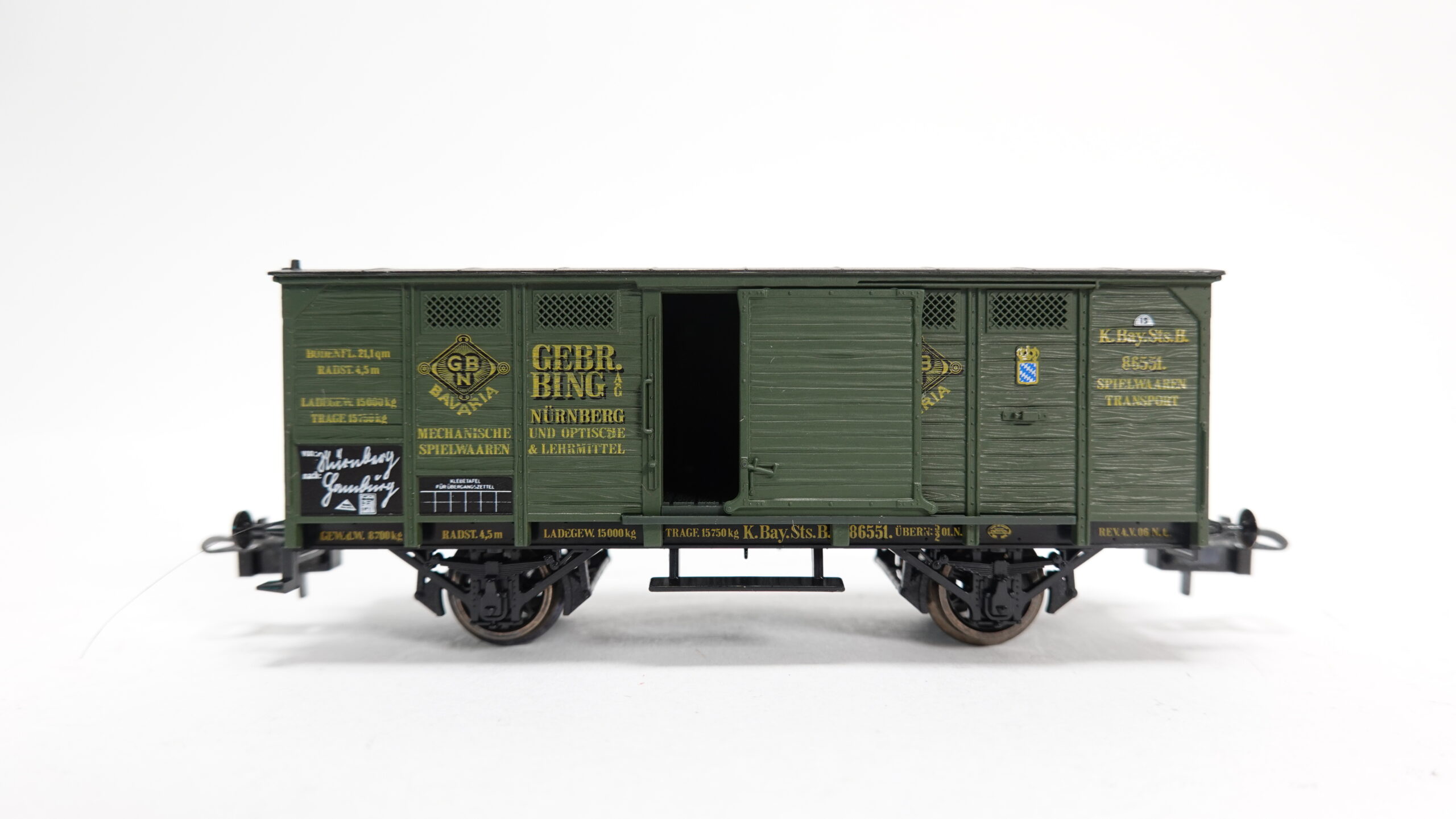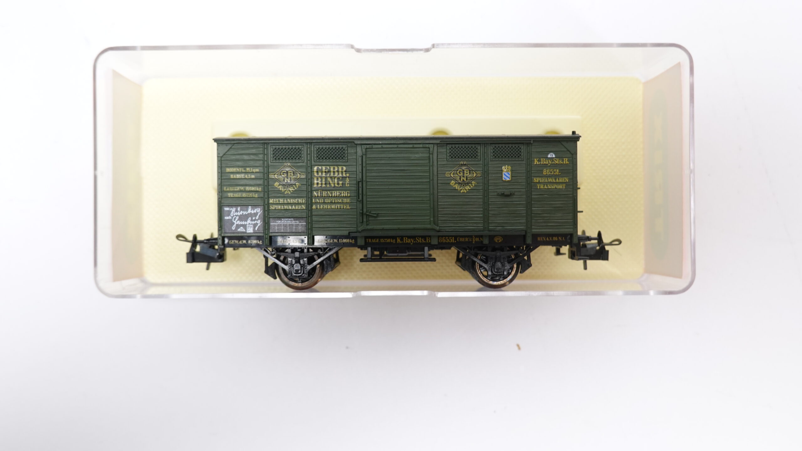 Der historische Bezug zu den Gebrüder Bing, einem der bedeutendsten Spielwarenhersteller des 19. Jahrhunderts, macht diesen Wagen besonders interessant für Sammler und Modellbahnfreunde. Bing-Wagen stehen für Präzision, Liebe zum Detail und die Verbindung von Spielzeug- und Eisenbahngeschichte. Der K.Bay.Sts.B GW verkörpert somit nicht nur die bayerische Eisenbahntradition, sondern auch ein Stück Industriegeschichte.