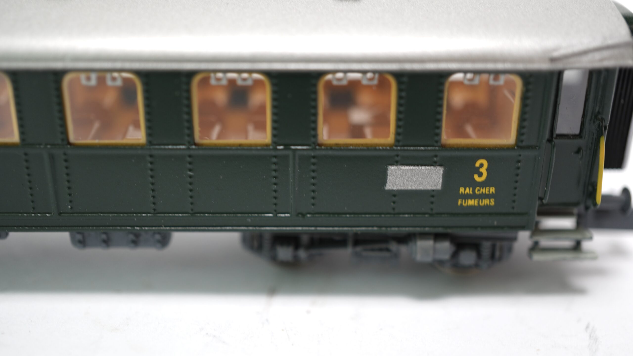 Der hier dargestellte Wagen trägt die Bezeichnung „NICHTRAUCHER“ (2. Klasse) und „RAUCHER“ (3. Klasse) – ein charmantes Detail aus einer Ära, als man die Klassenwahl nicht nur am Komfort, sondern auch am Tabakgeruch erkennen konnte.