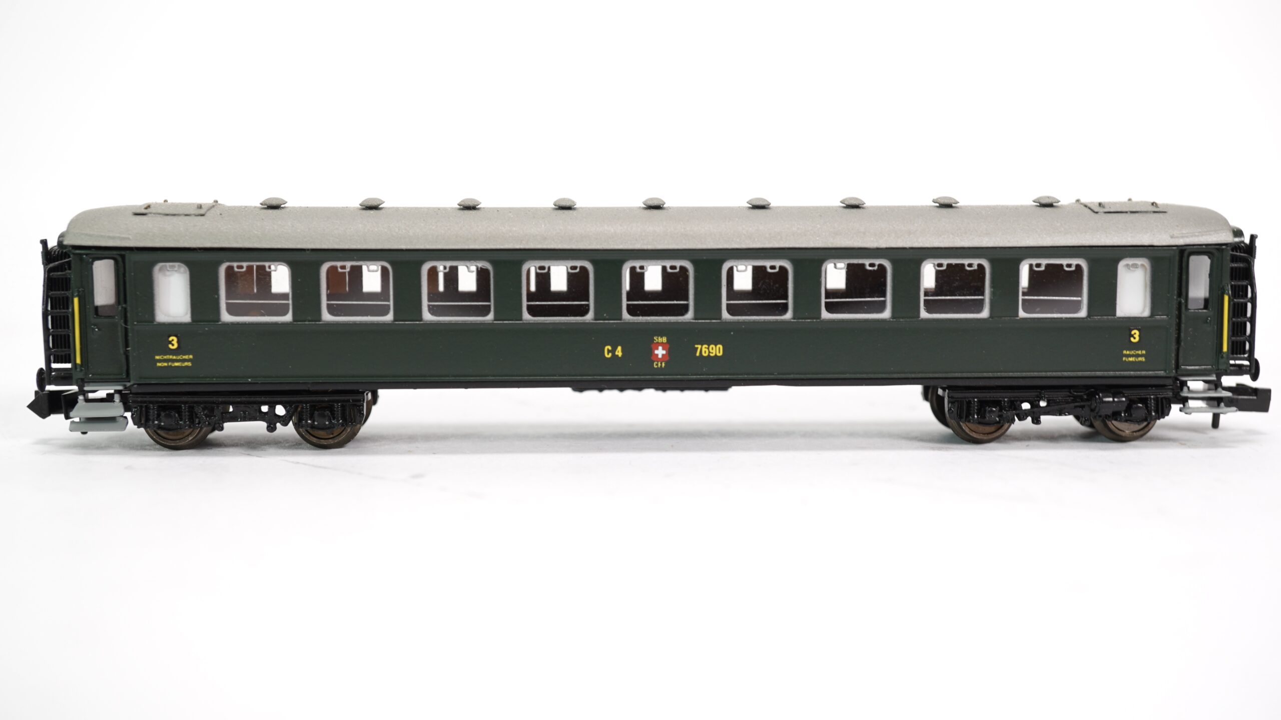 Mit dem Modell Wabu 58.410 holen sich Sammler und Modellbahner einen authentischen Vertreter der Schweizer Bahnwelt der Epoche III ins Haus: Der SBB C4ü 7690, ein vierachsiger Stahlwagen der 3. Klasse, steht exemplarisch für den Personenverkehr der Schweizerischen Bundesbahnen (SBB) in den 1930er- bis 1950er-Jahren.