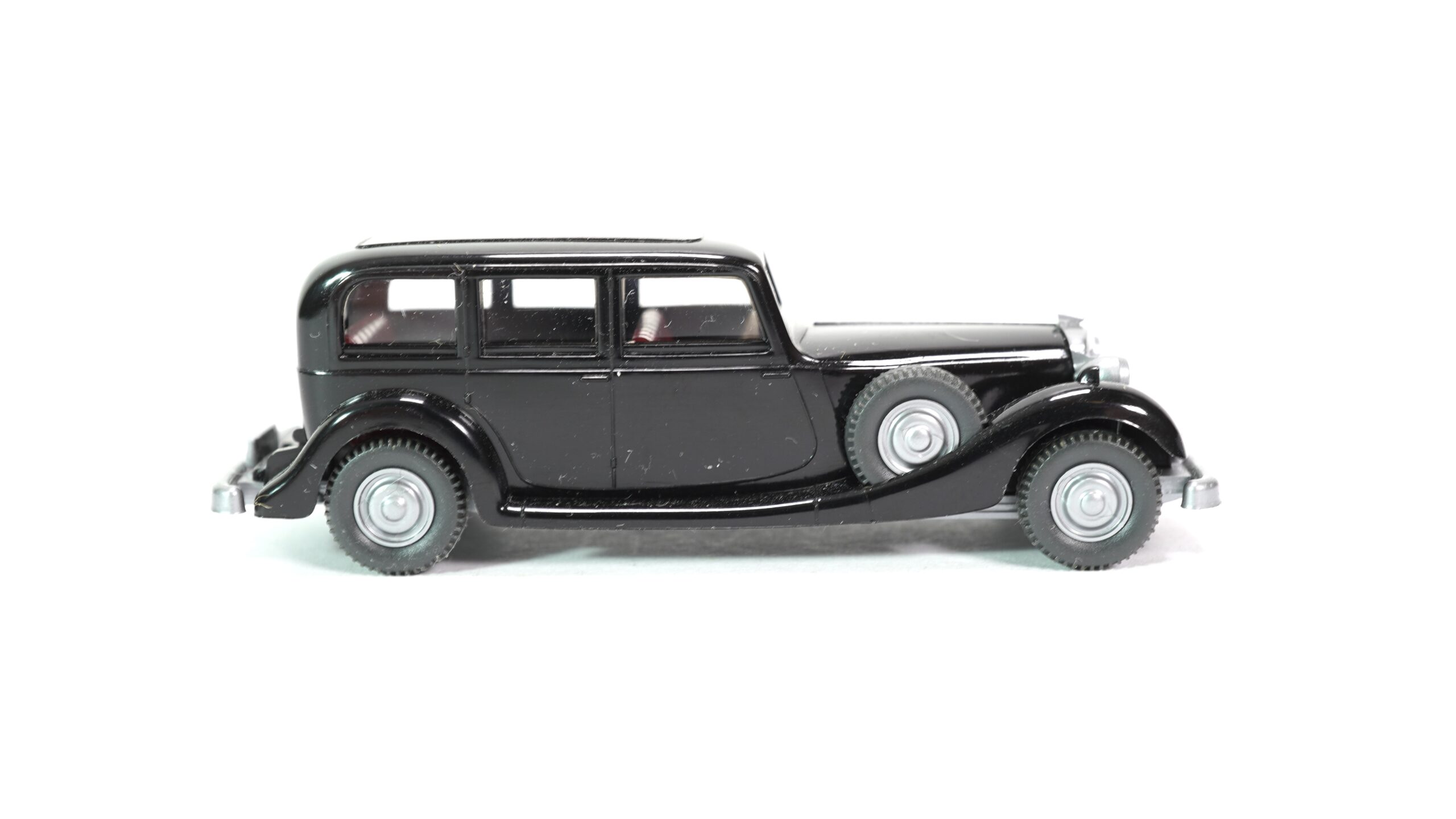 Die Wiking Horch 850 Pullmann Limousine erinnert an diese Epoche der großen Staatskarossen und noblen Chauffeurfahrzeuge. Sie steht für eine Zeit, in der Automobile nicht nur Fortbewegungsmittel, sondern Ausdruck von gesellschaftlichem Rang waren. Für Sammler klassischer Fahrzeuge im Maßstab H0 ist dieses Modell ein Stück automobiler Kulturgeschichte – ein Symbol für Luxus, Tradition und stilvolle Zurückhaltung.