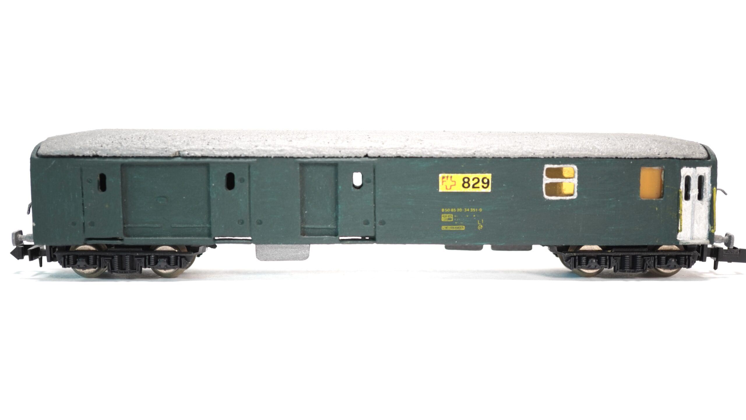 Der WSM N SBB Gepäckwagen grün Nr. 829 Eigenbau erinnert an jene Ära, in der Bahnmitarbeiter Koffer, Pakete und sogar sperrige Güter direkt im Zug beförderten. Diese Wagen waren oft das Bindeglied zwischen Personen- und Güterverkehr und spielten eine wichtige Rolle im täglichen Ablauf auf den Schienen. Gerade auf längeren Strecken oder in alpinen Regionen waren sie essenziell, um den Transport reibungslos zu gestalten.
