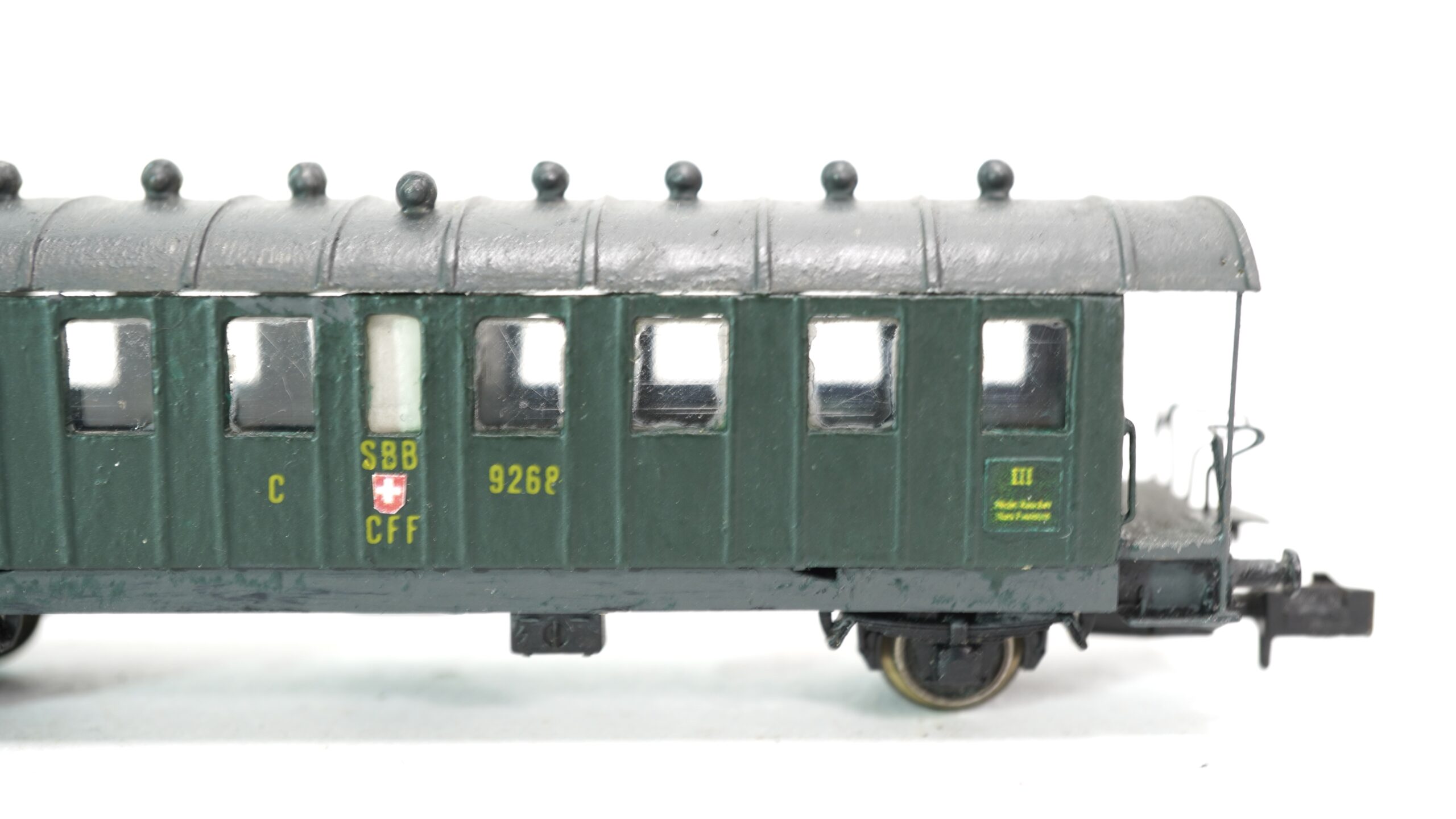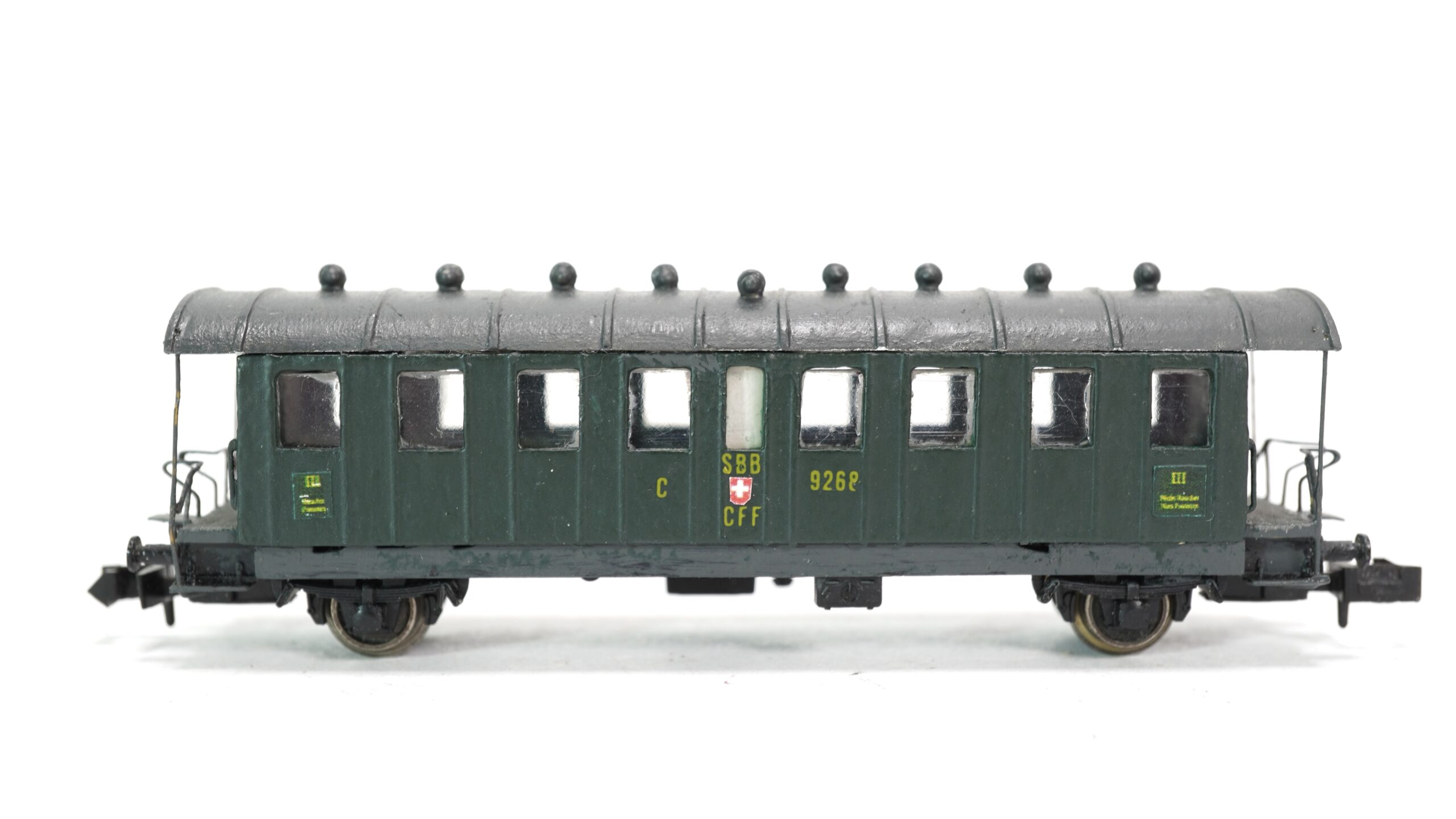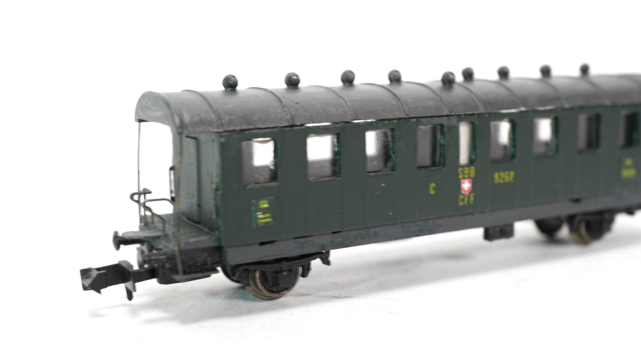 Der WSM N SBB Personenwagen 9268 ist ein beeindruckendes Zeugnis der Schweizer Bahntradition und vermittelt die Eleganz und den Komfort des Bahnreisens in vergangenen Zeiten. Die SBB setzte diesen Personenwagen ein, um Reisenden ein sicheres, zuverlässiges und komfortables Transportmittel für kurze und lange Strecken zu bieten. Besonders in den frühen und mittleren Jahrzehnten des 20. Jahrhunderts war der Wagen ein Symbol für die hochwertige Schweizer Eisenbahnkultur, in der Technik, Präzision und Reisekomfort Hand in Hand gingen.